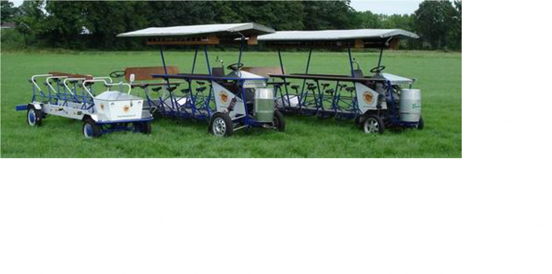 Gezellig fietsen op DE CAFERACER fietsen. Fietsen voor groepen tot ongeveer 40 personen op 3 fietsen. De fiets doet zijn naam eer aan, want je kunt met 10-12 personen fietsen terwijl je tegenover elkaar aan de bar zit en 'de barman' ondertussen een biertje tapt. Mocht je na een tijdje toch wat vermoeid zijn, kun je je fietsplek verruilen met iemand van de reservebank. Deze fantastische fiets heeft versnellingen, daardoor is het altijd lekker fietsen in de juiste versnelling, zelfs achteruit fietsen is mogelijk.